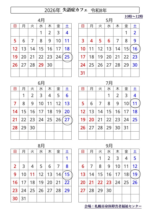 失語症カフェ2026年度上半期日程